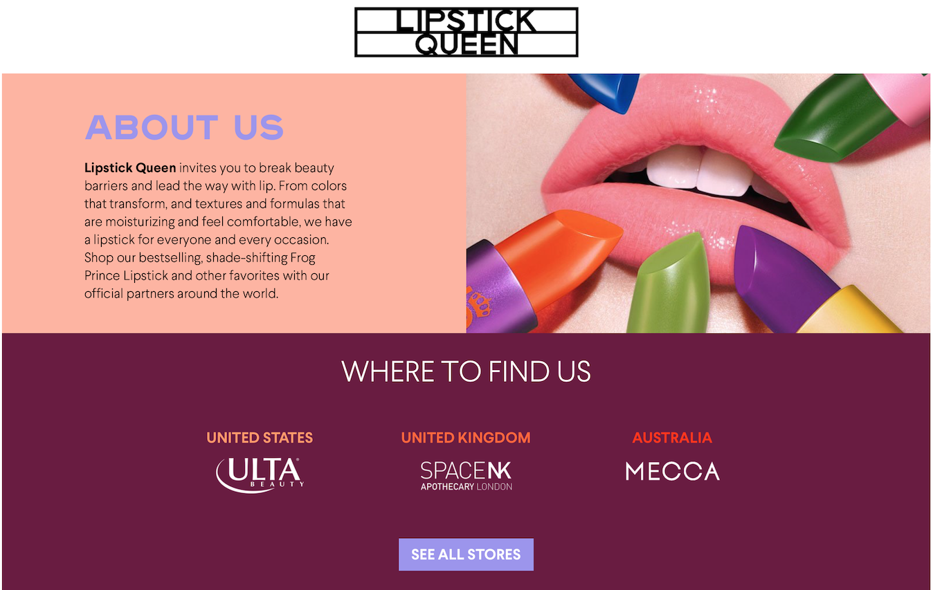 Lipstick Queen 最有名的产品是“青蛙王子(Frog Prince)”变色唇膏。