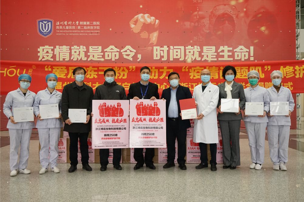 浙江博后生物联合温州医科大学蛋白结构中心向温医大附二院一线医护人员捐赠了250套爱后活性多肽修护冻干粉。
