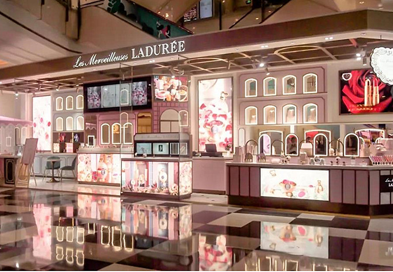 以花瓣腮红走红的Les Merveilleuses LADURÉE,正式在中国上海来福士广场开出了全球首个智慧零售旗舰店,拉开了征战中国市场的序幕。