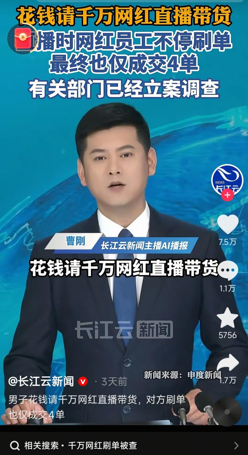 2025年“直播圣地”丽晶国际大厦出现退租潮;2025年前三季度,“直播电商第一股”遥望科技累计亏损达4.1亿元。而就在这两天,“3万请1400万网红带货仅成交4单”“花5万请千万网红带货只卖出58单”“商家请太原老葛带货损失超千万”三条有关直播间流量造假的新闻相继登上微博热搜。