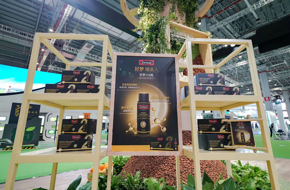 记者暴走进博会发现,Swisse此次除了签约行云全球汇之外,还在今年10月针对美妆店渠道推出了小黑盒——γ氨基丁酸胶原蛋白,这种氨基酸胶原蛋白获得了日本专利。Swisse品牌驻上海办美妆渠道主管告诉记者,小黑盒其实是一款夜间胶原蛋白,每一瓶添加的水解胶原蛋白是5100㎎,它是目前市面上所有胶原蛋白产品里胶原蛋白含量最高的产品,它不仅可以在夜间为皮肤补充胶原蛋白,还有助于睡眠。