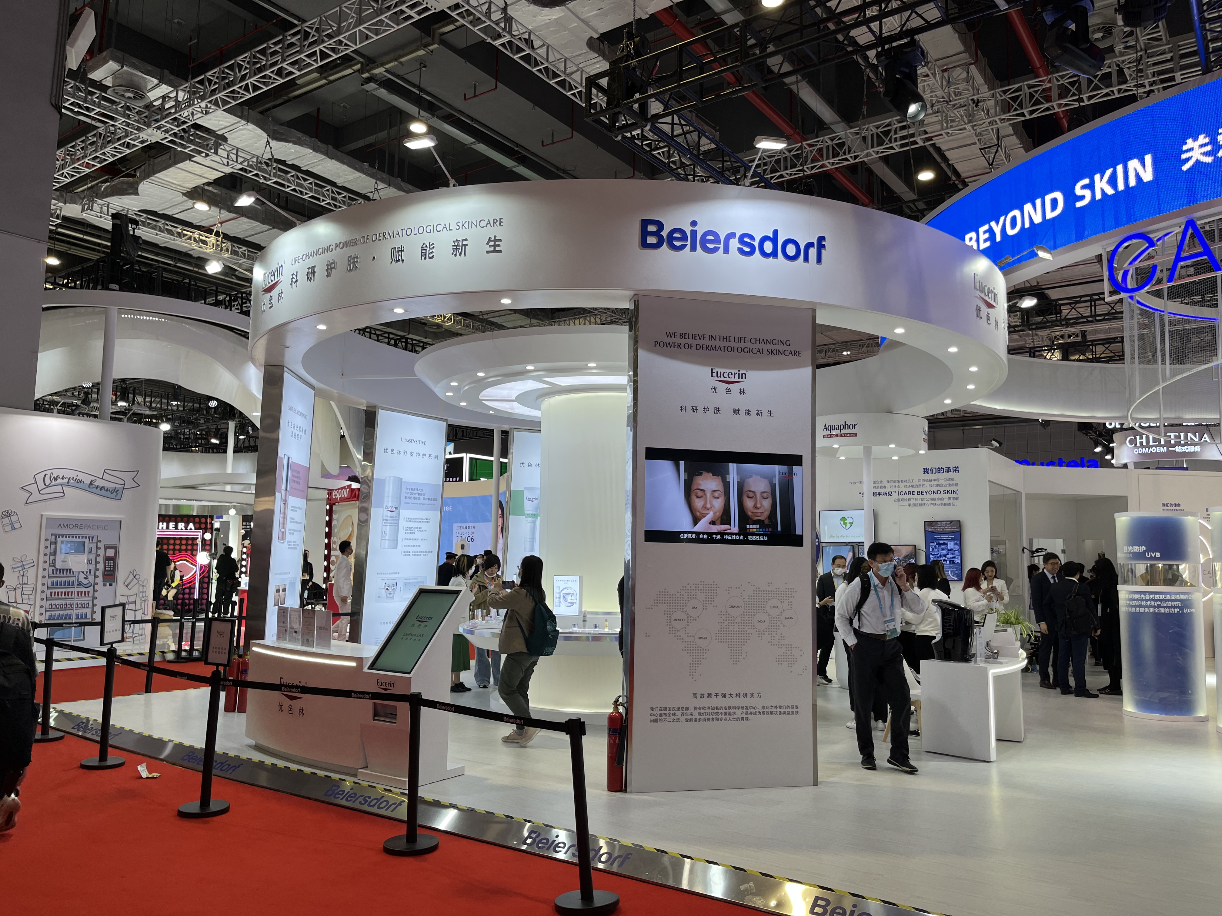 今年,联合利华展台以“行善致美”为主题,展出了包括旁氏、AHC、多芬、渡美、炫诗在内的17个品牌的进口产品,其中,超10款产品为国内首发。