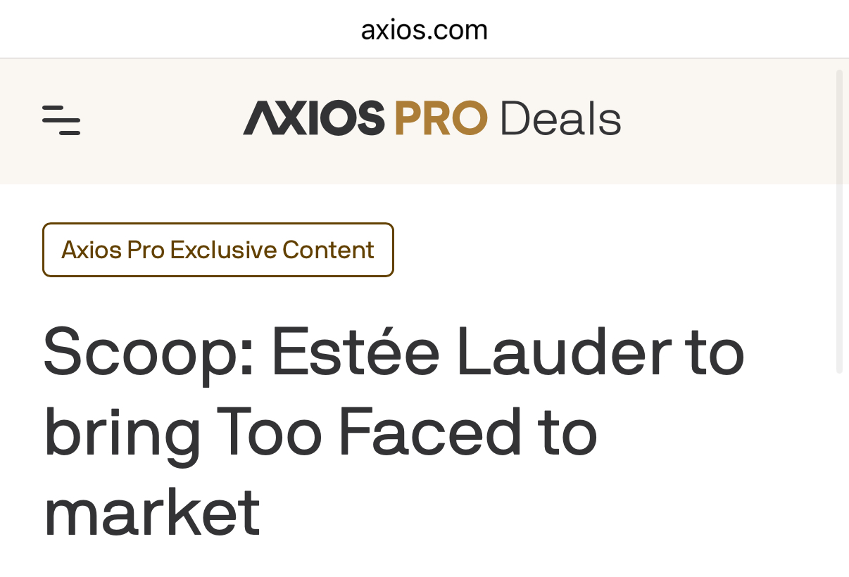 10月16日,据Axios Pro获悉,雅诗兰黛正在考虑出售旗下彩妆品牌Too Faced,目前具体细节暂未披露。