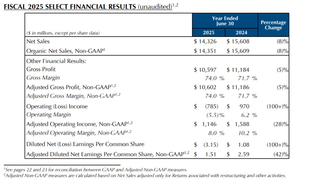 不过,通过出售、裁减旗下非核心品牌以弥补业绩亏损,并更好地聚焦、发展具有竞争力的品牌,已是如今美妆巨头们“减量增质”的常规举措。根据最新披露的2025财年业绩,期内,雅诗兰黛集团净收入同比下降8%至143.26亿美元(约合人民币1021.01亿元);营业利润亏损7.85亿美元(约合人民币55.95亿元),同比暴跌超100%。
